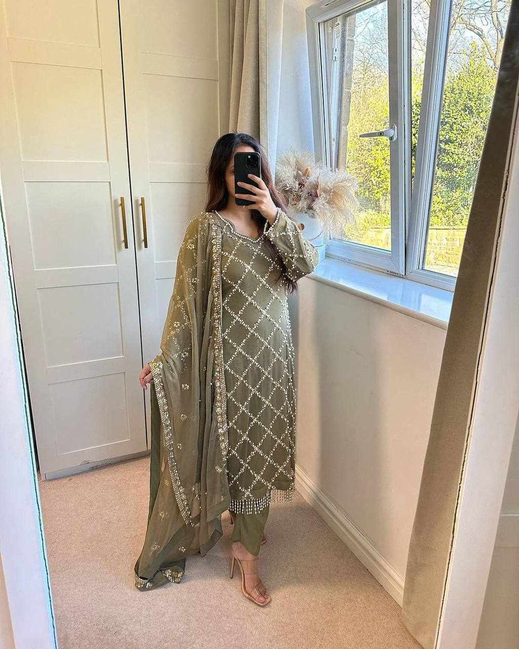 | Name : | MF 409 New Fancy Embroidered Mehndi Color Dress |