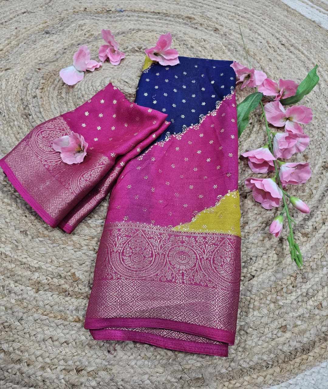 Saree Fabric :march mellow jecard border with foil printed sarees design