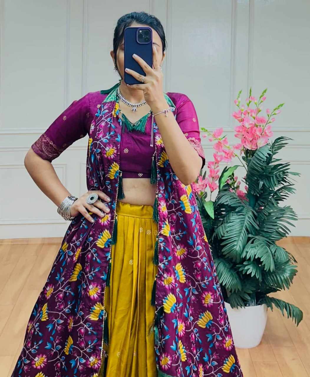| Name : | PIYU 10-2 Silk Chaniya Choli With Viving Foil Yellow Lehnga |