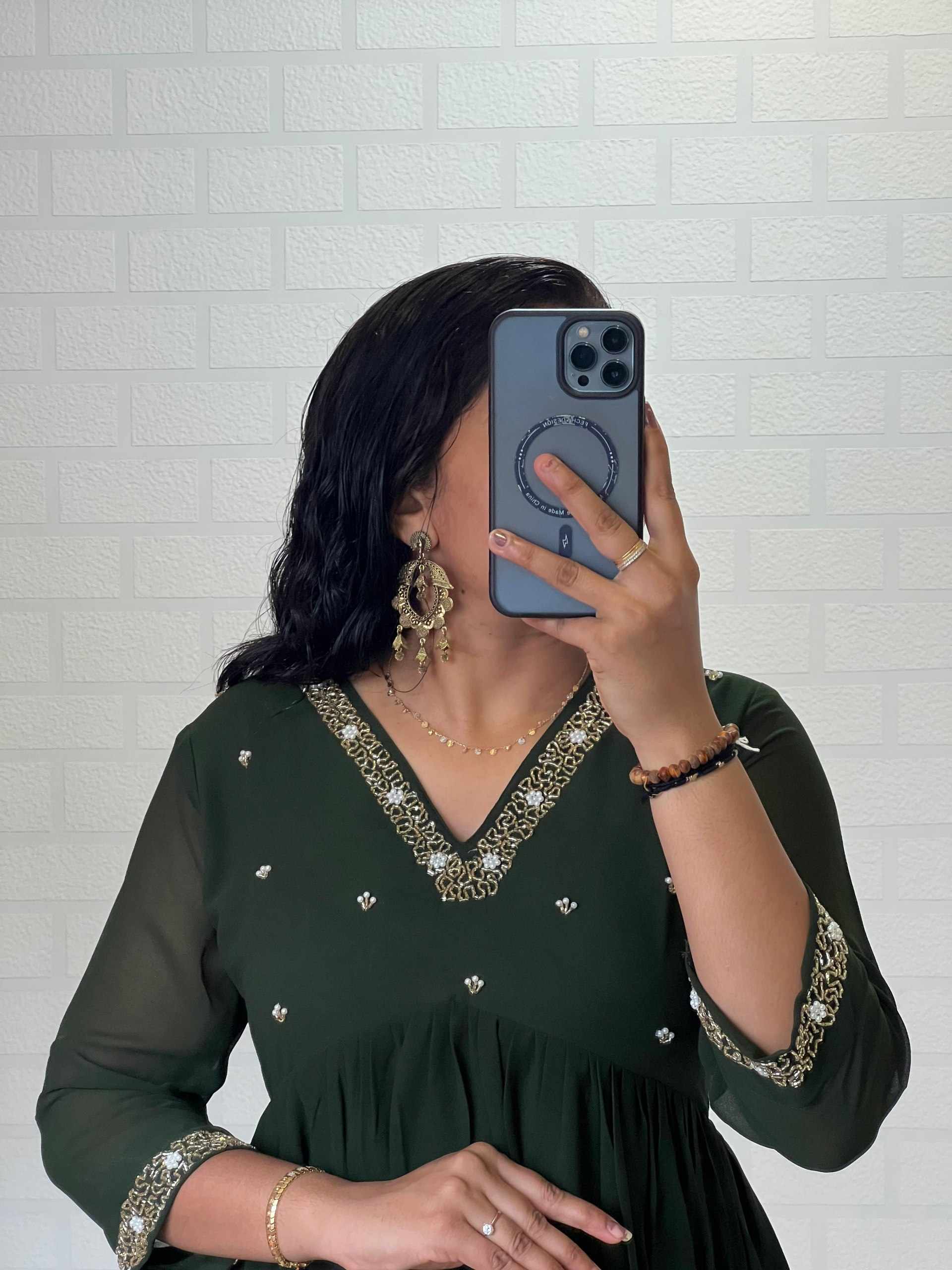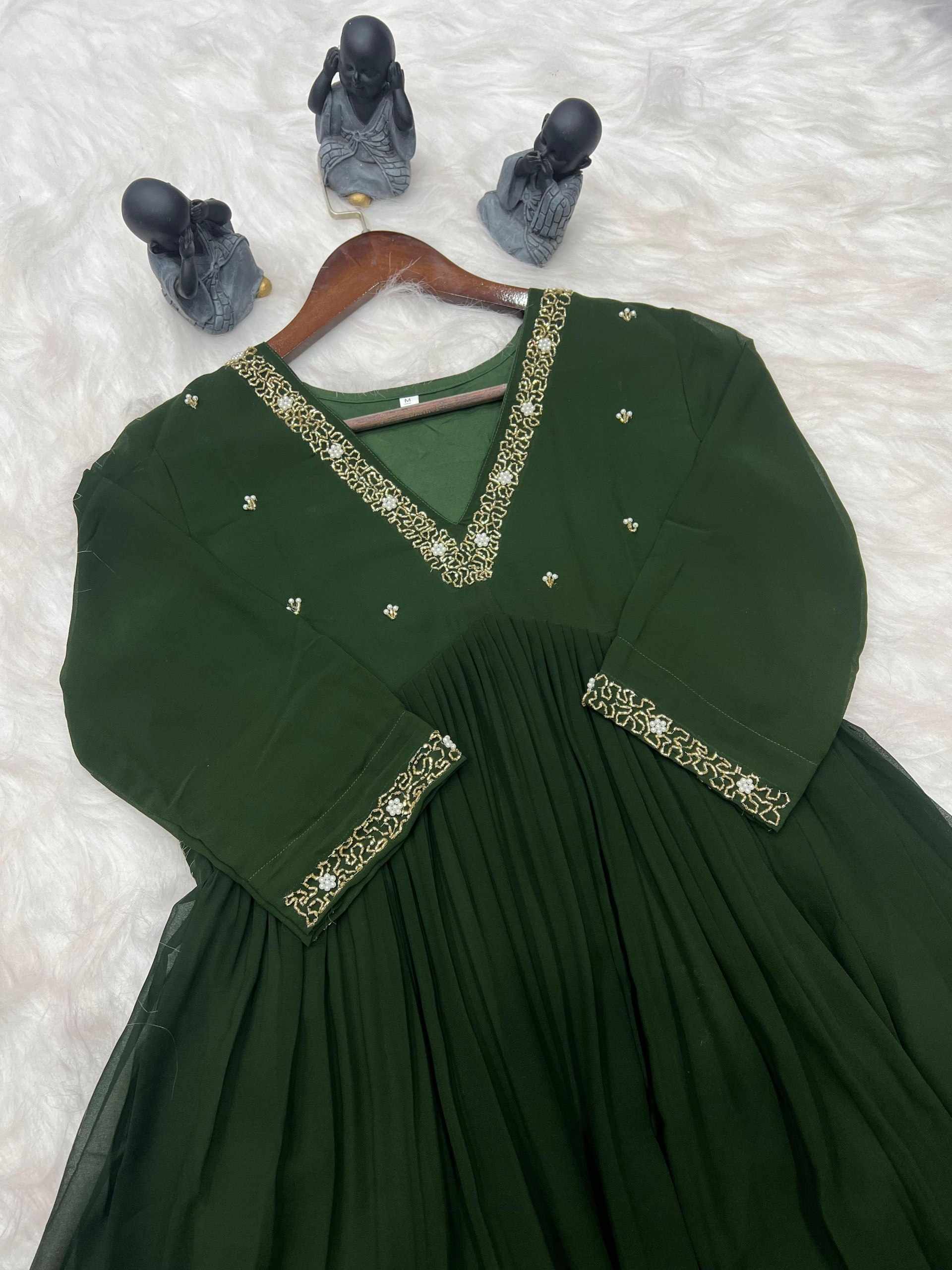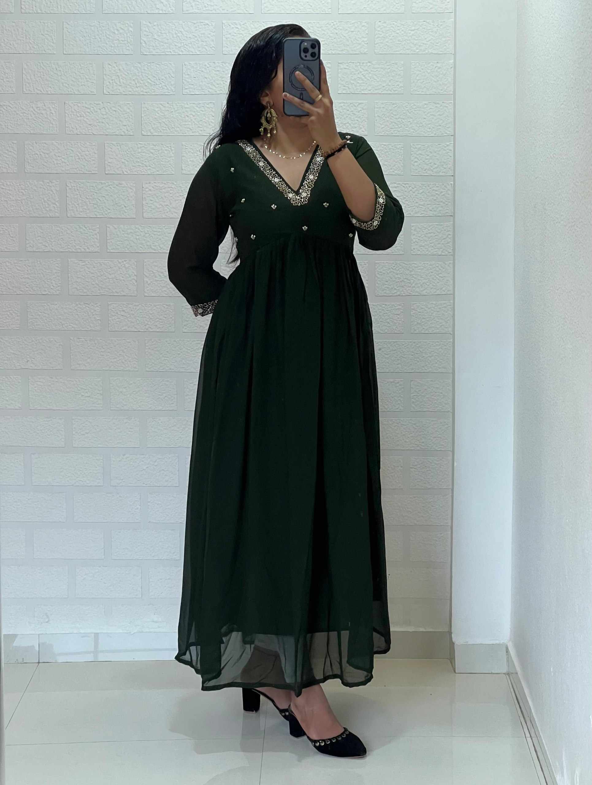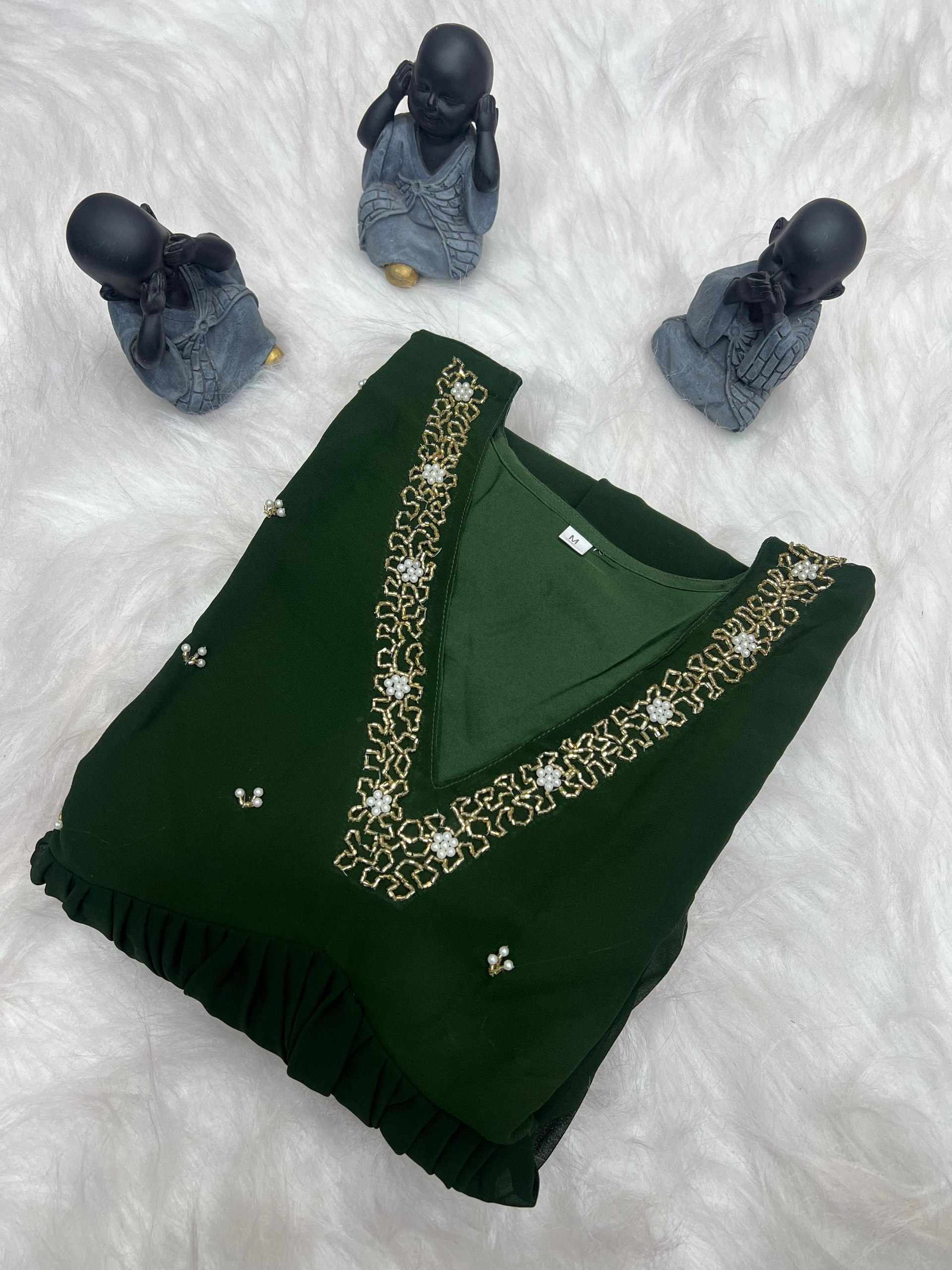 WM10 GREEN BLOOMING GEORGETTE HANDWORK KURTI