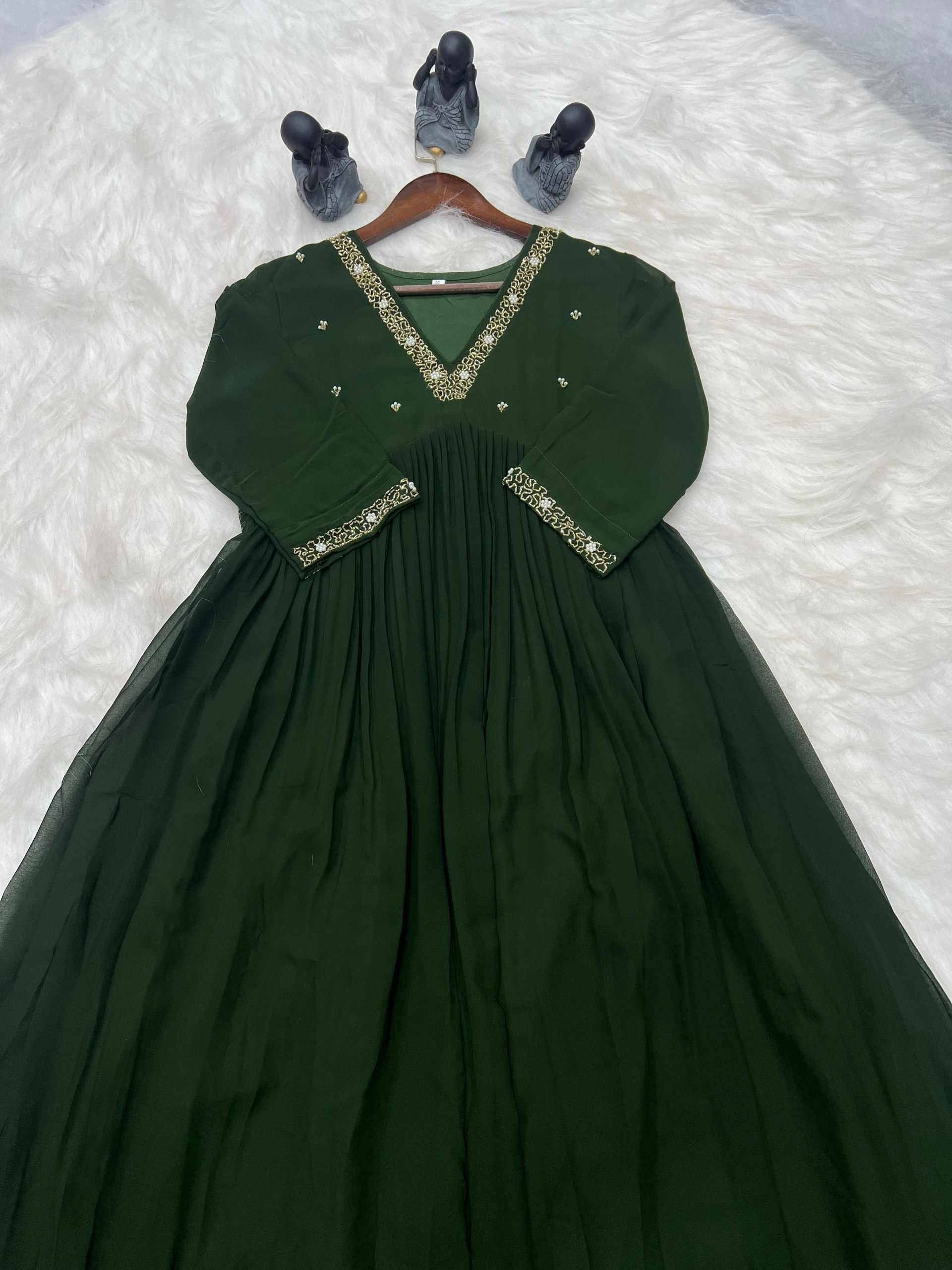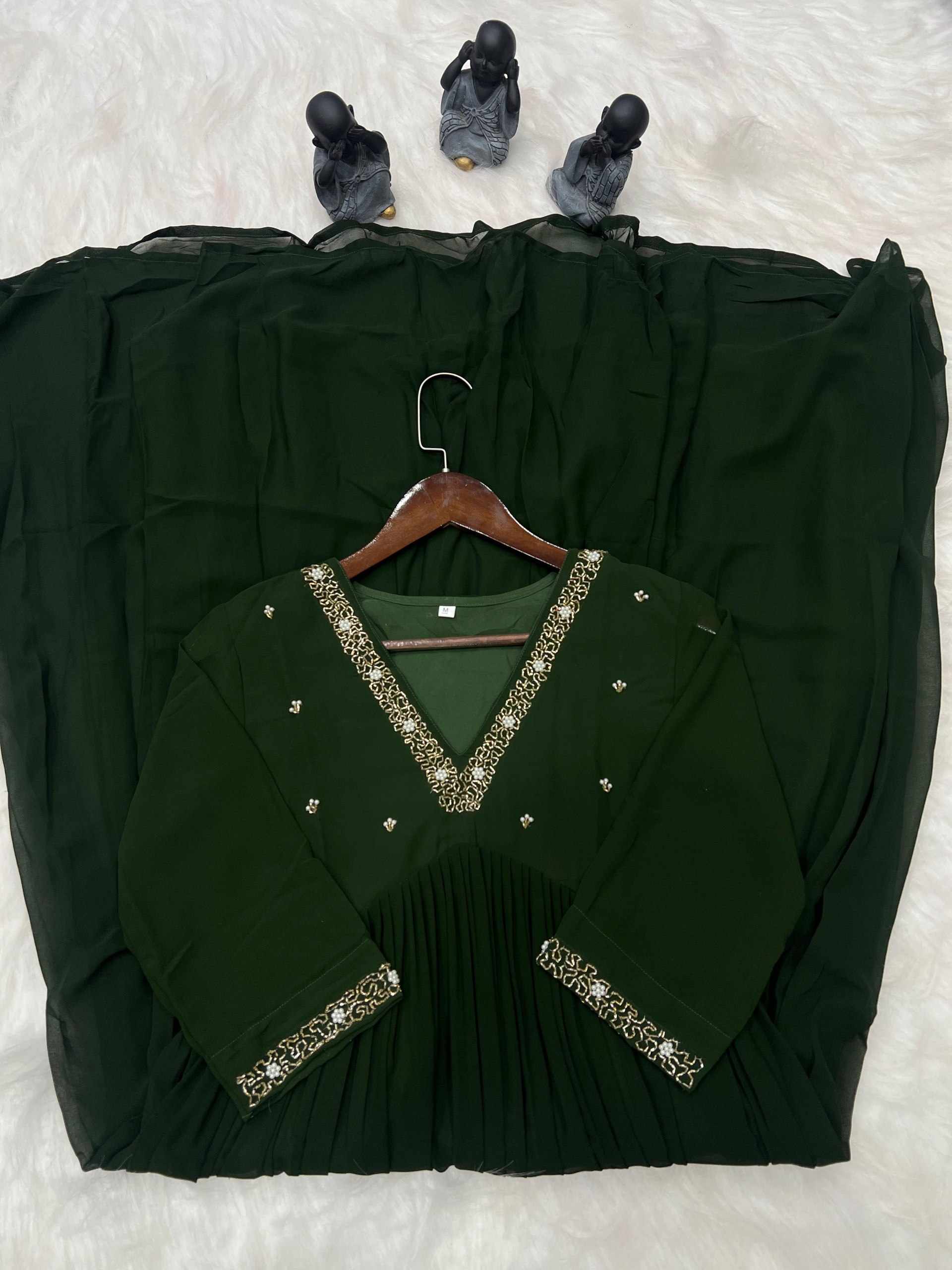 | Name : | WM10 GREEN BLOOMING GEORGETTE HANDWORK KURTI |